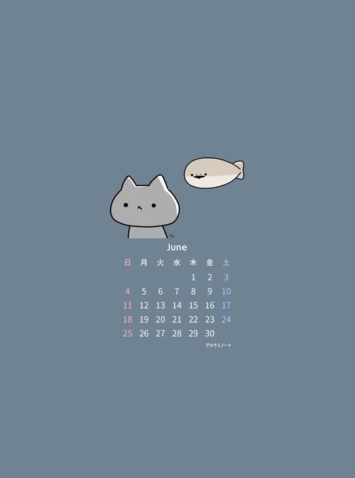 #理科ねこ壁紙カレンダー 6月>(っ'-')╮ =͟͟͞͞🌼🍨ブォン もう7日になってしまいました… そして描く時間がなかなか確保できず…😭 2021年、2022年の使いまわしですが2種置いときます。 スマホのロック画面への設定推奨。周囲に余白があるので画面サイズに合わせて良い感じに調整してね。 🍀