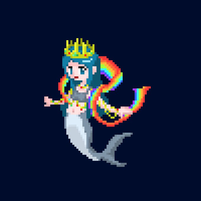 🦈🌈👑 #絵文字3つもらってキャラデザする #ドット絵 #pixelart