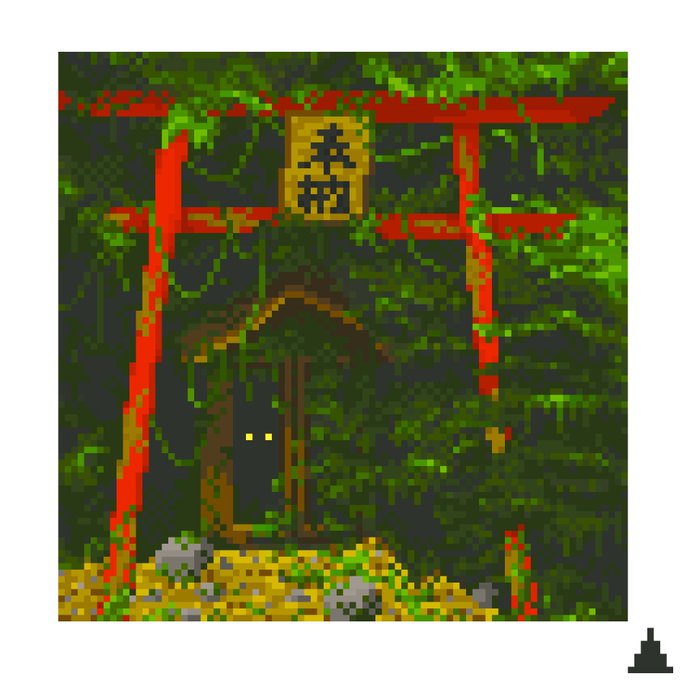 古い祠には何かが住んでいるらしい #ドット絵 #pixelart