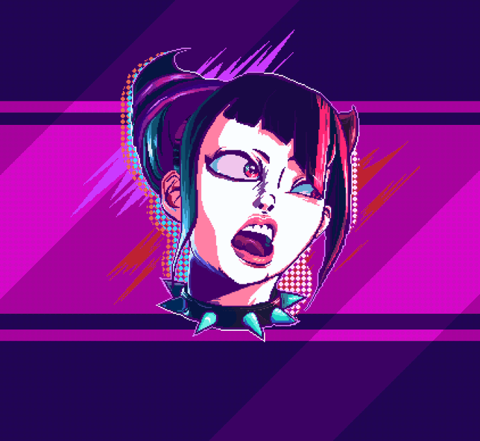 3 9 Drawing practice that I decided to carry to the final product, I love how expressive Juri is #JuriHan #StreetFighter6 #pixelart 23/07/18 11:19