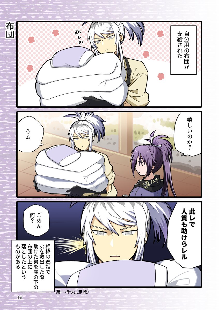 【3月19日新刊サンプル】 はじめて本丸に顕現した人間無骨の、ほのぼの4コマギャグ本です。 □A5/28P/300円(イベント価格) □イベント当日の頒布は【FGOの森長可スぺ】になります。 『東1ホール チ20a ゆきみもち』 詳細はpixivに記載してあります。 pixiv.net/artworks/10625…