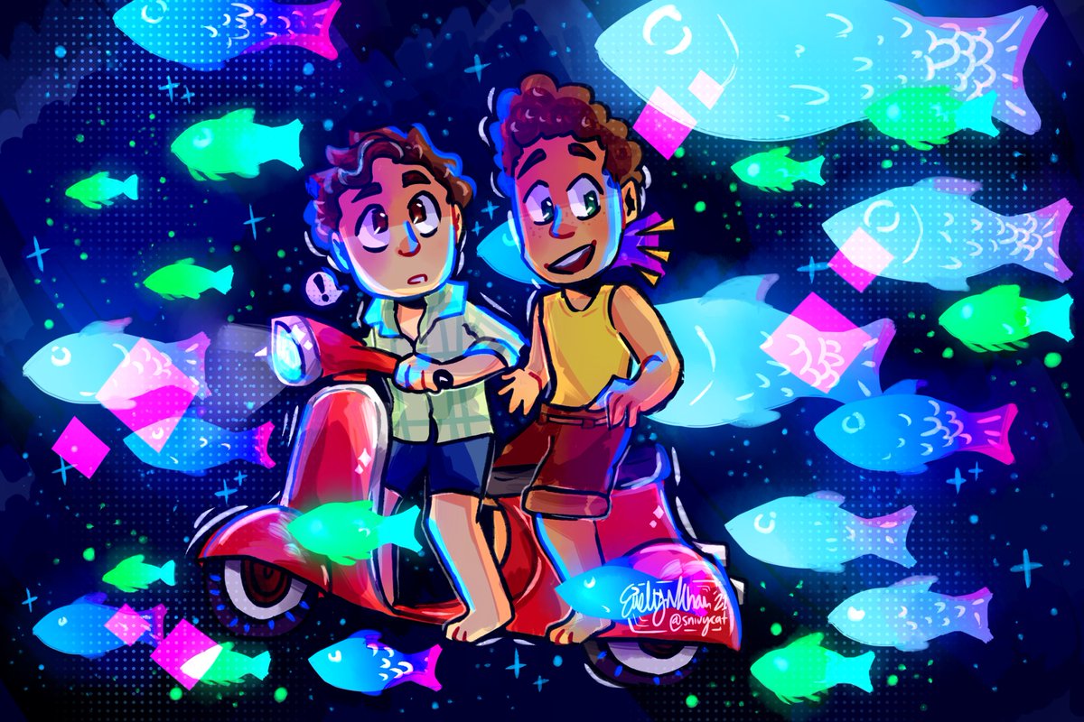 Lucas imagination is so wholesome and vibrant, wanted to redraw this scene 🥺💖🌟 #Luca #PixarLuca #illustration