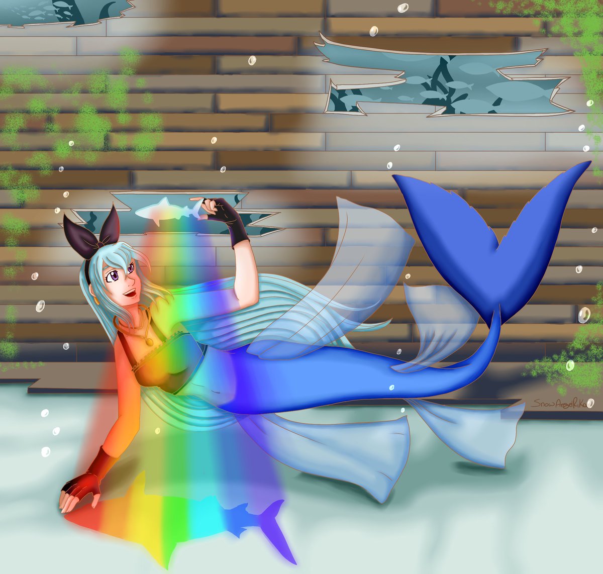 It is the first week of MerMay and @artsirenmj prompt list! 'Rainbow Shark' 🌈🦈 So we're starting off with Riley finding a shark shaped crystal in a sunken ship and then look what the light does!! #originalcharacter #khoc #mermay