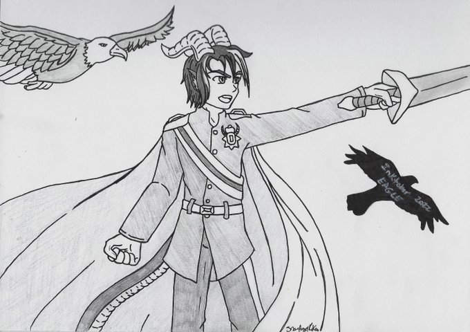 "A prince does not back down when the Kingdom is threatened. If the guards are assembled, then so am I." Miles for Eagle of Inktober! This one allowed me to explore his military outfit and I definitely want to draw it again! #originalcharacters #inktober2022 #inktoberday11