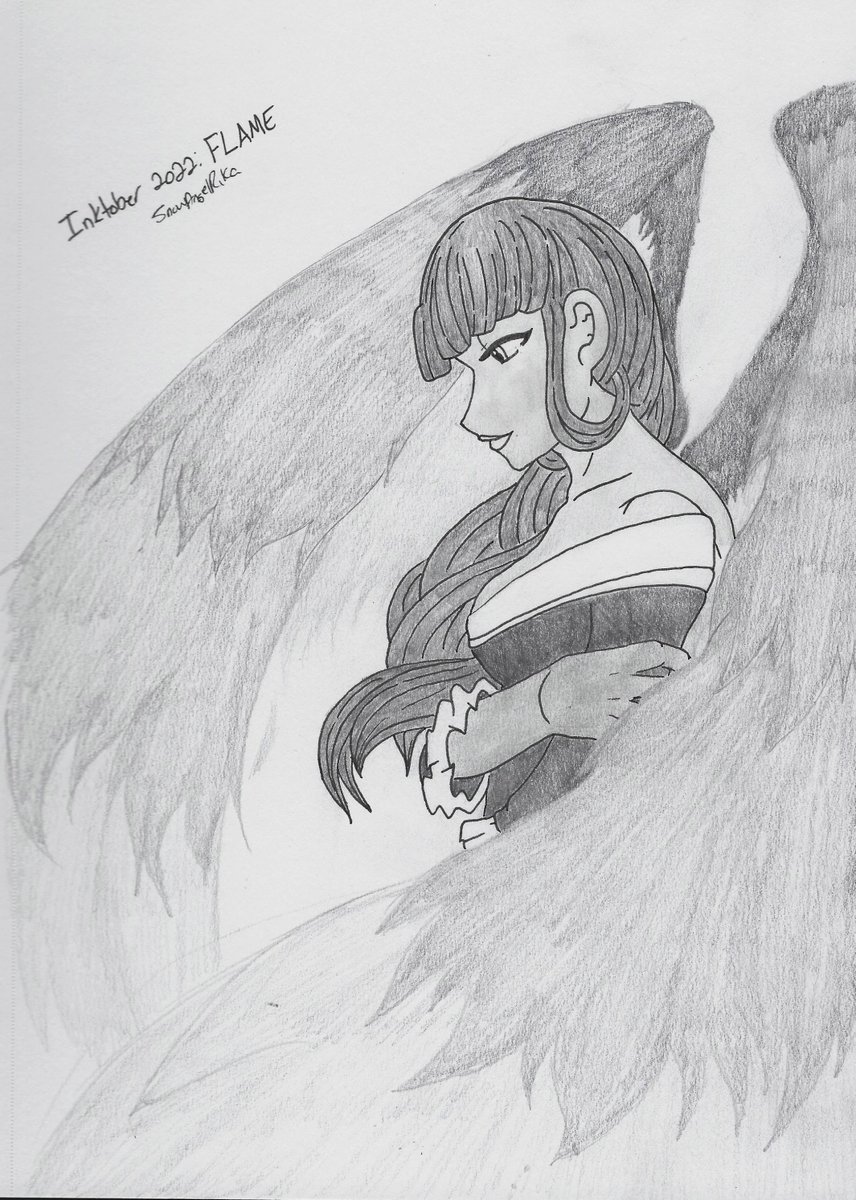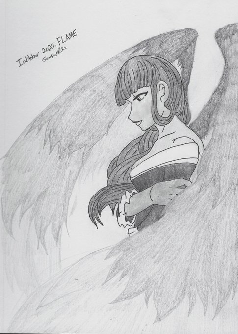 #inktober2022 Flame featuring my #fire #Phoenix Bridgett! Decided not to line her wings, what do you think?