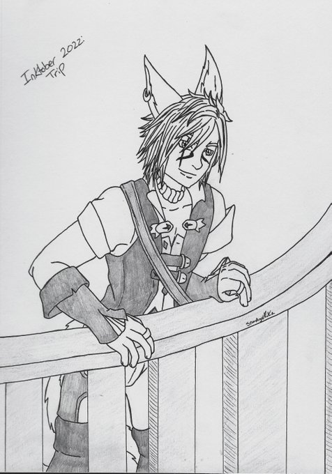 Inktober day 7! Trip! Featuring my new boy, Cayden Shadowstepp, my character in Final Fantasy! Yes I started playing recently and I'm already in love with him so expect more soon. 💜 #originalcharacter #inktober #inktober2022 #inktobertrip