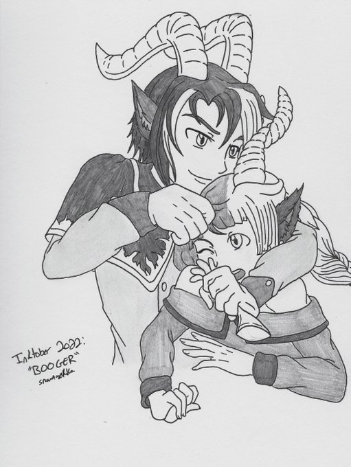 "You are such a booger!" "No one uses that anymore, brother. If you're gonna insult me, do it properly! I am a brat." "Oh, you are sonething all right." Inktober prompt booger with Miles and Acadia! These siblings don't always get along! #inktober #originalcharacter #booger