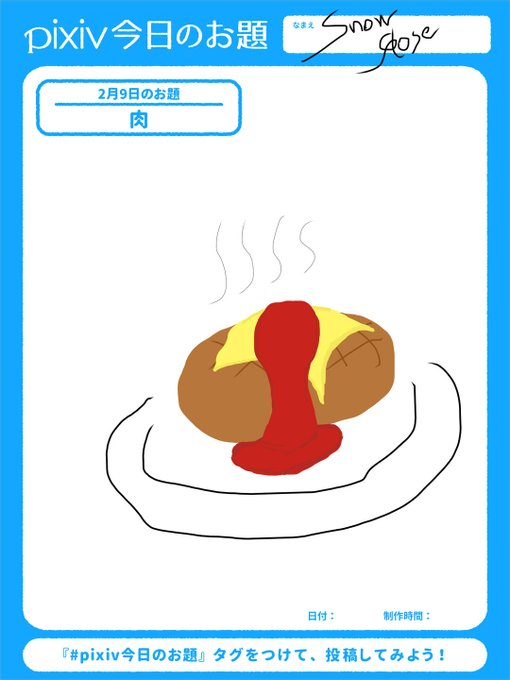 0 2 #肉 #pixiv今日のお題 #sensei #リドローOK #雑絵 お肉と言われハンバーグを書くあたりww 天邪鬼 画力無いので許してww sketch.pixiv.net/items/33224617… 22/02/09 23:05