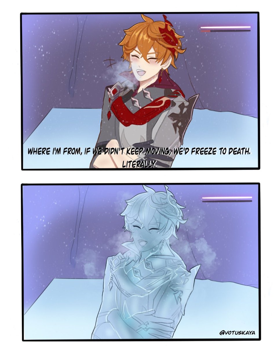 I forgot who the frick started the childe snezhnaya quote about freeze but i draw out into a mini comic Do not repost ty #genshinimpactfanart