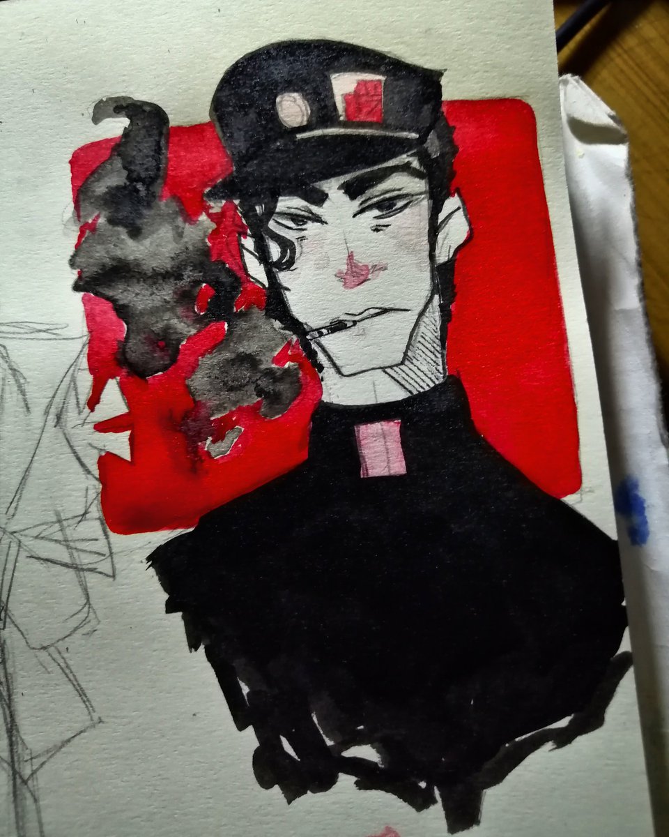 И так, первый день На самом деле я люблю всех ДжоДжо, они каждый по своему зайки, но успела, к сожалению я сегодня только Джотаро и каких-то пробных чертиков, вот так вот #Inktober2019 #Inctober