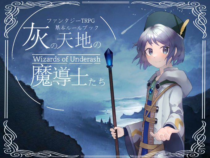 141 263 ではまず表紙から。 同人ファンタジーTRPG「灰の天地の魔導士たち」(#灰まどTRPG)が完成したので、告知します!! 一言で言うと、魔導士となって滅びかけの異世界で冒険するTRPGです。 7月18日に、boothでリリースする予定! 22/07/08 22:05