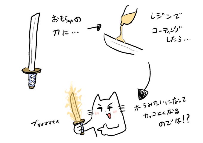 259 564 レジンでピアス作ってたときに、「刀のおもちゃにレジンをコーティングすればカッコよくなるのでは!?」と思いついてやってみたところ、分量も流し方も全て間違えておしっこの模型ができました。 23/08/16 23:54