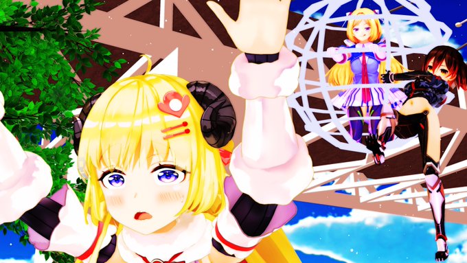 ロボ子さん「いってこーい!!」 アキロゼ「まかせてー!」 わため「いやぁぁぁぁぁぁぁ~」 前回のバカタレVSあんシスコラボであったようななかったようなシーン 下にGB #ロボ子Art #ロボ子MMD #アロ絵 #つのまきあーと
