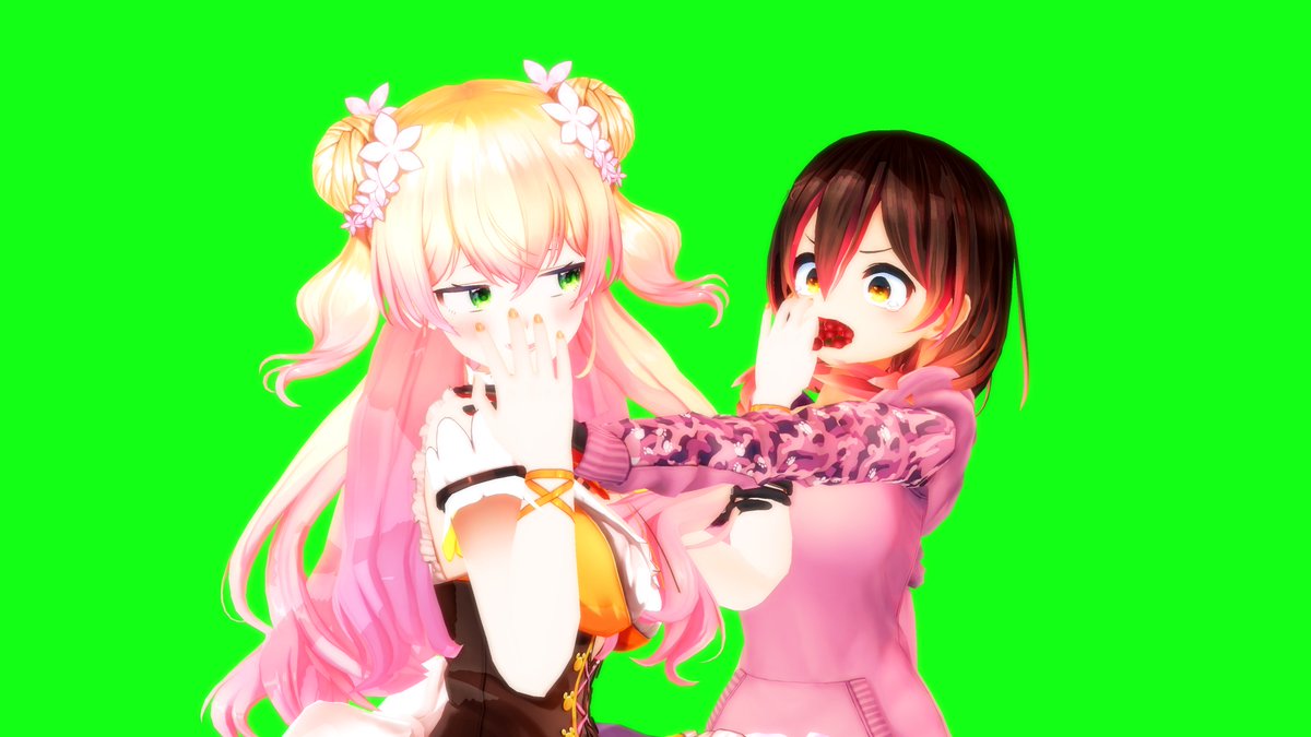 ねねち「はい、あーん♡」 ロボ子さん「んんんんんんん~~~!!!!!」 負けて口に十数個のトマトを口に詰め込まれたロボ子さんと嬉々として詰め込むねねち 下にGB #ロボ子Art #ロボ子MMD #ねねアルバム #あーんしてねねろぼ