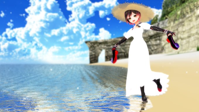 波打ち際のロボ子さん 下にGB #ロボ子Art #ロボ子MMD