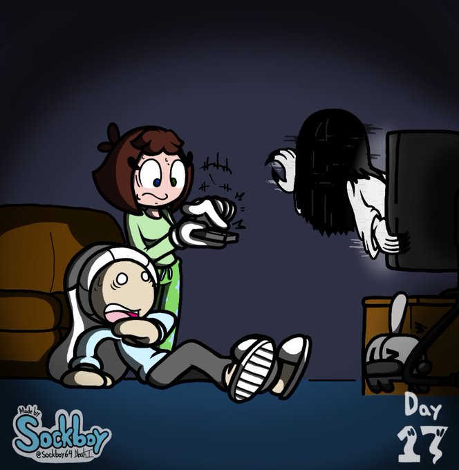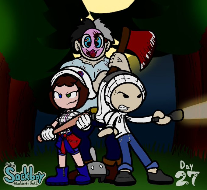 #Inktober Day 27: There's no telling what that psycho will do here at camp. He could be anywhere. "Ah don't worry Sockboy, nobody should be dying here. we aren't like those usual stereotypes!" ... Wait doesn't the nerdy type usually die? #digitalart #drawing #inktober2020