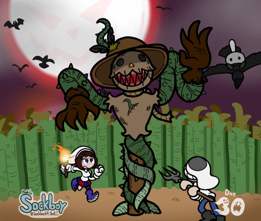 #Inktober Day 30: We followed the Halloween Spirit into the corn maze where one final monster awaits! Scariest scare crow i've had to encounter, but we can't give up seeing how close we are to stopping this evil for good! #digitalart #drawing #inktober2020