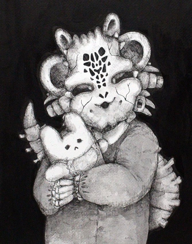 0 7 いつもニップ・ニップと一緒にいる子は「チャーリー・クラウン」と言います。純粋無垢な優しさと子ども独特の残酷さを持つ子です。 #drawing #ink #monotone #monoart #ドローイング #ペン画 20/12/19 18:04