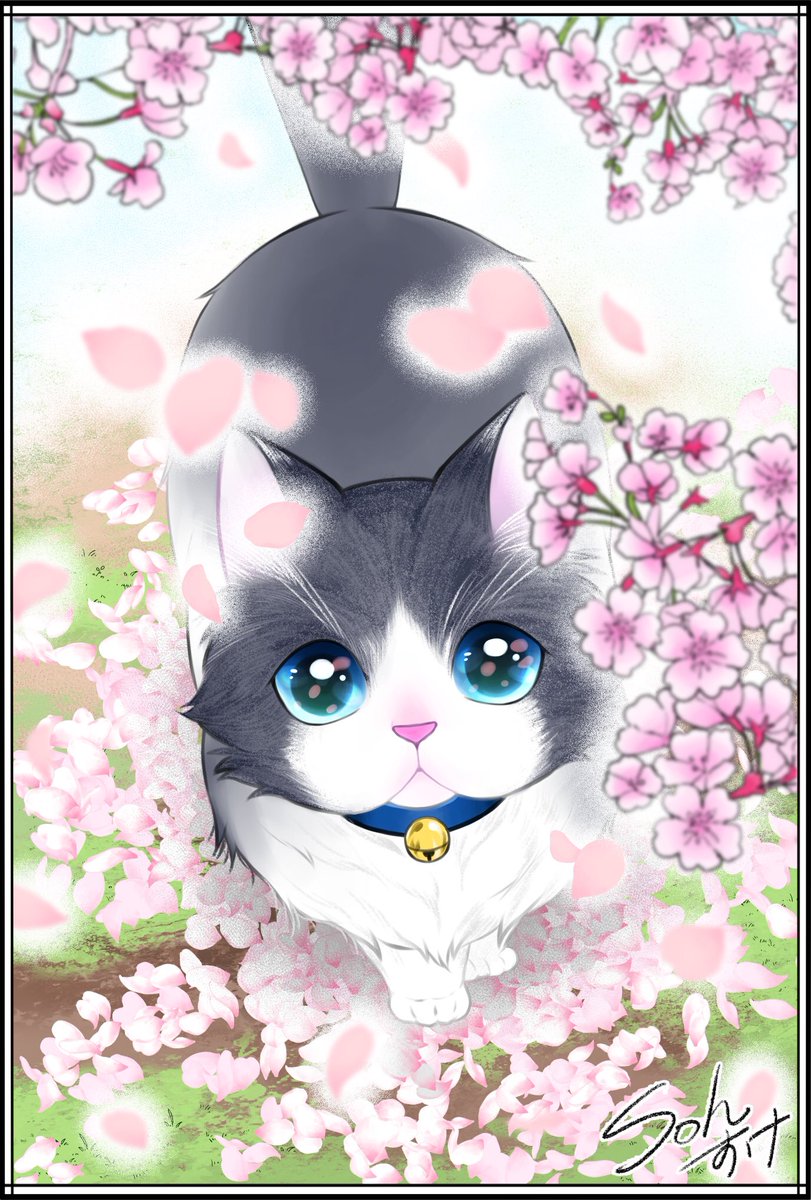 さくらを見つめるネッコ …ちょっとシーズン過ぎたけど #猫 #創作 #絵柄が好みって人にフォローされたい #初夏の創作クラスタフォロー祭り #夏の創作クラスタフォロー祭り #猫好きさんと繋がりたい