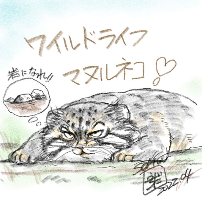 マヌルイラスト練習中🐱 マヌルというと冬毛のモフモフが有名のようだが シュッとした夏毛も野性味があってカッコイイ&可愛いと思う😺 #マヌルネコ #manul #Otocolobusmanul #pallascat #Манул #wildcats #猫イラスト #Grumpycat #cat