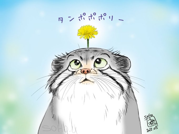 マヌルイラスト練習中🐱 マヌルネコで夏休みの自由研究をやってみたかったなぁ~😄🌻🌞 #マヌルネコ #manul #Otocolobusmanul #pallascat #Манул #wildcats #猫イラスト #Grumpycat #cat #兔狲 #マヌルネコイラスト