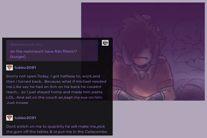 welcome to aimsey's cafe! for every inch billzo is moved farther from the cafe the price decreases by five cents #aimseyfanart #dreamsmpfanart #ranboofanart
