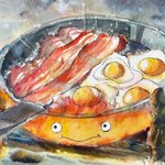 ジブリ飯シリーズです🍳✨ ベーコンエッグ、ニシンパイ、ラピュタパンを描いてみました🥰 ジブリに出てくる食事はどれも美味しそうですよね🤤❣️ ベーコンエッグはネットプリントが出来るので良ければどうぞ🥰 リプ欄に番号を載せてます! #ジブリ #ジブリ飯 #水彩画 #模写 #ネップリ