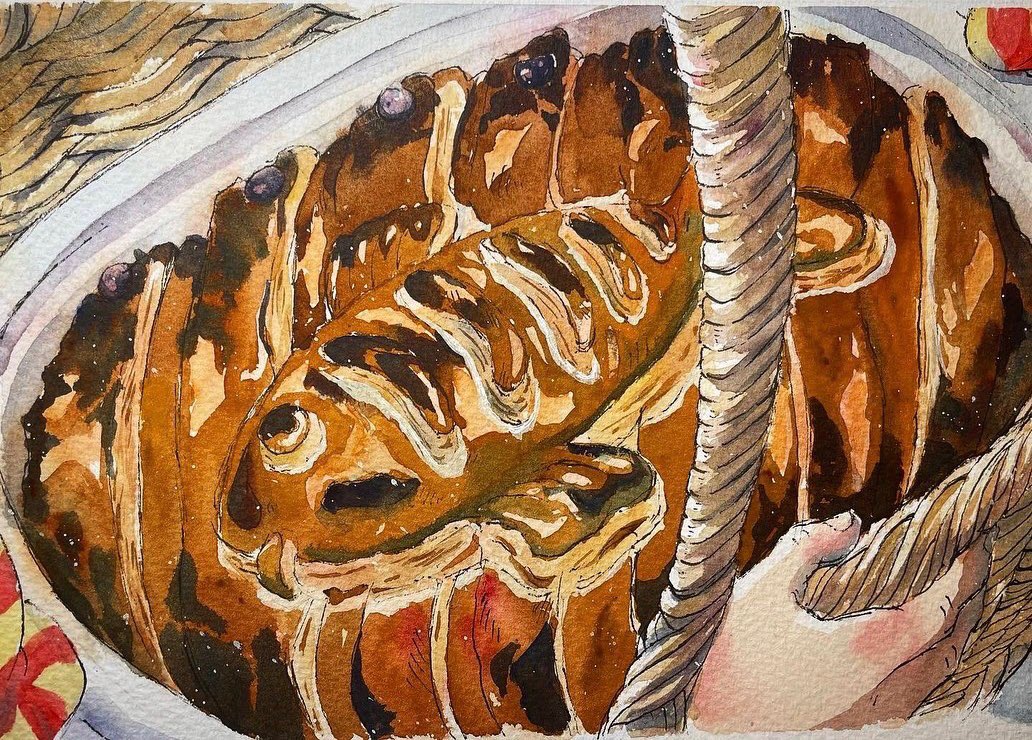6 183 ジブリ飯シリーズです🍳✨ ベーコンエッグ、ニシンパイ、ラピュタパンを描いてみました🥰 ジブリに出てくる食事はどれも美味しそうですよね🤤❣️ ベーコンエッグはネットプリントが出来るので良ければどうぞ🥰 リプ欄に番号を載せてます! #ジブリ #ジブリ飯 #水彩画 #模写 #ネップリ 22/09/14 18:36