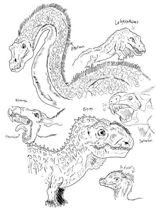 some vivosaurs sketches mixing the actual looks of the dinosaurs #paleoart #dinosaurs #fossilfighters
