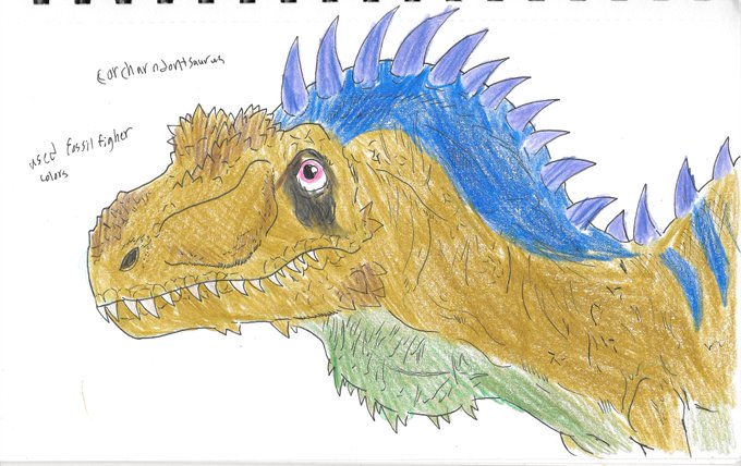 haven't used my color pencils in a loooong while so decided to use for a Carcharodontosaurus piece. used the colors from fossil fighter's (anyone remember that?) Carchar #paleoart #dinosaur #carcharodontosaurus #dinosaurart #sketch