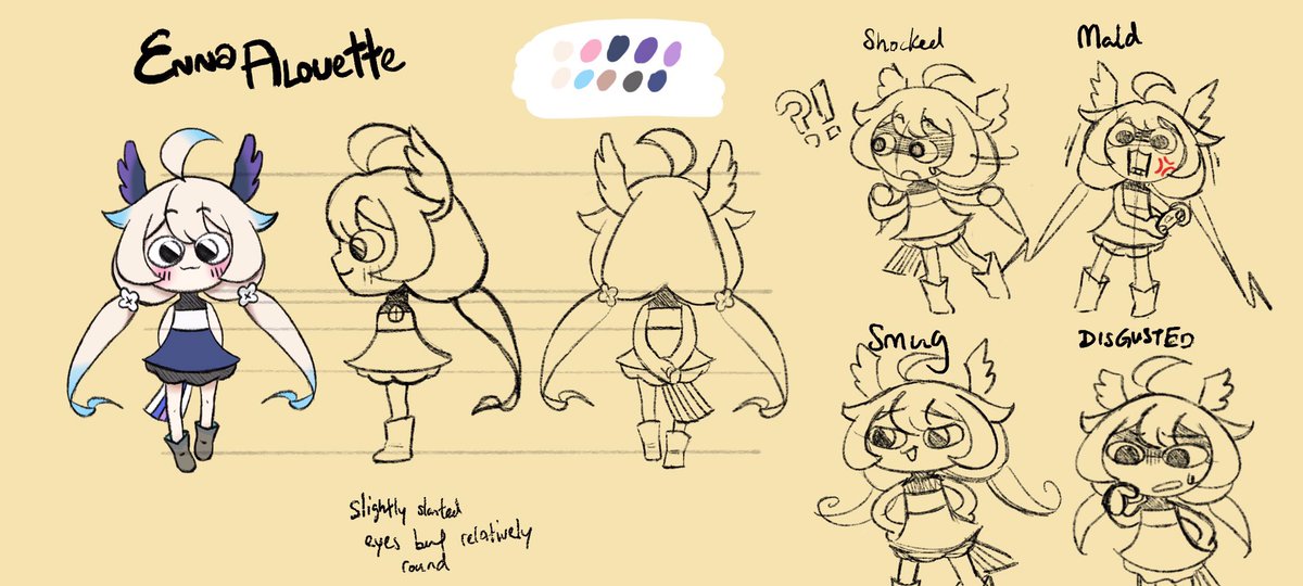 Was thinking up expressions or scenes about Enna, so here’s a quick doodle of Enna eating Potato Chips! #Palouette #aloupeeps #EnnaAlouette #NijisanjiEn