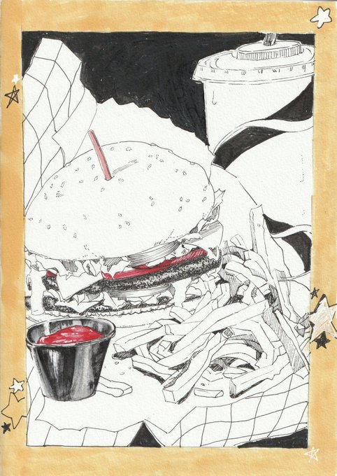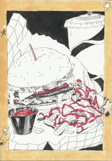#inktober ALT, I just put the ketchup on the fries but some people really liked this one 🥲 both versions are available as prints rn #art #artist #drawing #sketch #sketchbook #foodart #artwork #Illustrator #Illustration #inktober2022