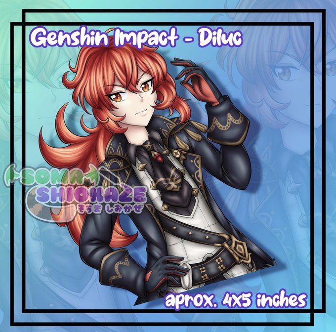 🔥 Preorder Diluc to get him as a decal! 🔥 Aprox 4x5 inches 🔥 Water, weather, and UV proof! 🔥 Perfect for cars, water bottles, PC cases, etc! Link to the shop in the thread 💖 #GenshinImpact #miHoYo #hoyoverse #DilucFanart #Genshin