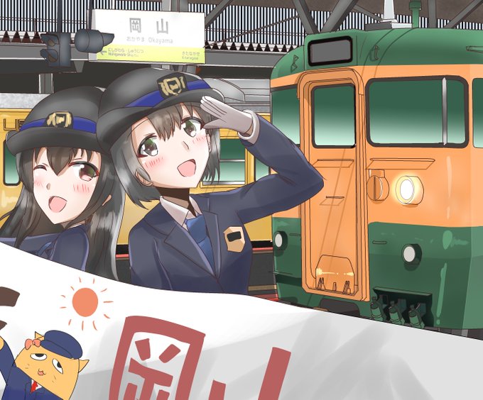 岡山親善大使が岡山駅で出迎えてくれる系な絵を描きました 岡山親善大使可愛くて好き…