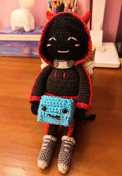 It took me almost a week, but I crocheted a BadBoyHalo plushie and a little Skeppy :D With love from Russia (ノ´ヮ`)ノ*: ・゚ #Badboyhalofanart #Skeppyfanart #mcytfanart #mcyt #happytwt #Skeppy #Badboyhalo