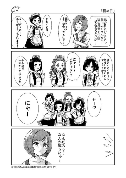 148 313 猫の日なので前川みくさんをゲストにGBNS漫画描きました #猫の日 #前川みく #岡崎泰葉 #白菊ほたる #関裕美 #松尾千鶴 22/02/22 22:25