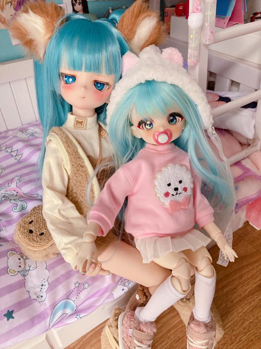 ももちゃんは胡桃ちゃんの家でお泊まり会しています〜💕 #mddはいいぞ #ひまたねっ娘 #ねるっ子