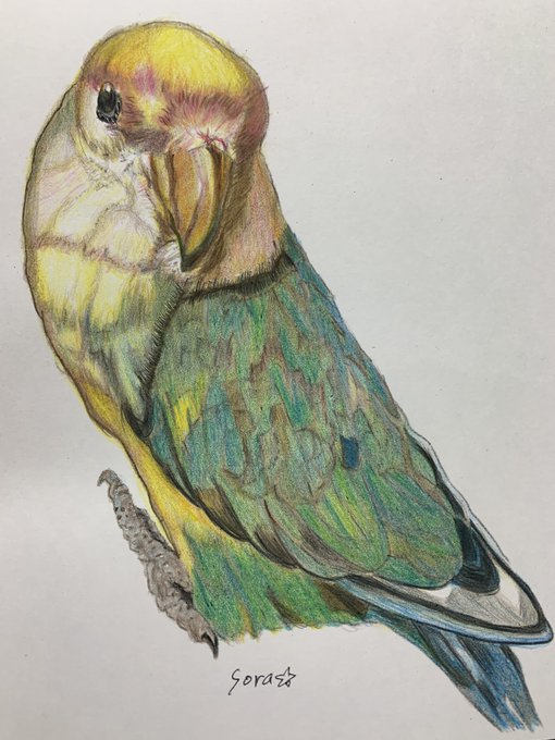 イロドリアルさんの色鉛筆画上達ドリル動物編、三上詩絵さんの描こう!3色から始める色鉛筆画の教本より描いた色鉛筆画です。色鉛筆画を始めた頃からすると少しは上達したかなぁ?😆👍🎨 #色鉛筆画 #みどりの日なので緑色の画像を貼る