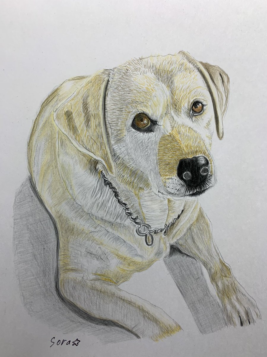 イロドリアルさんの色鉛筆画上達ドリル 動物編よりラブラドールレトリバーの 途中経過です。少しずつ気を抜かないように丁寧に描き進めています。 絵に魂を注入している感じです。 もう既に描きあげた皆さんの作品を見てはため息が出ます。お上手過ぎて😅💦 #イロドリアル #色鉛筆画上達ドリル動物編