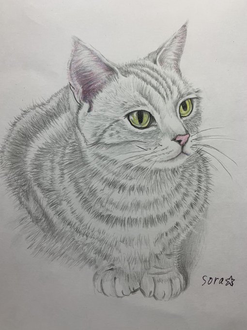 イロドリアルさんの色鉛筆画上達ドリル動物編よりスコティッシュフォールドを描きました。今回もかなり手こずりましたが何とか描きあげました😅💦 初めて背景を塗ってみました。ムラのないように頑張りました!! #イロドリアル #色鉛筆画上達ドリル動物編 #スコティッシュフォールド