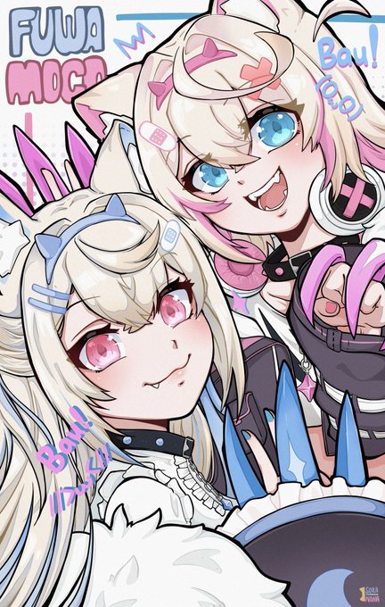Angy neko bird and neko shark 🐔🔱💢 . Kinda imagine this scene when I hear they say "Baka" in their song XD #ArtsOfAshes #TAKAMORI #callillust #ameliaRT #gawrt #amesame