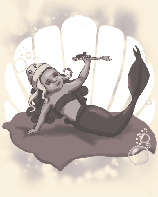 #mermay Day 15- Pet ... Is there something cuter than a manatee? There water lazy puppy. #artnouveaumermay grandidierite #wacommermay2022 #mermay2022 #mermayxmermaze #mermaychallenge2022