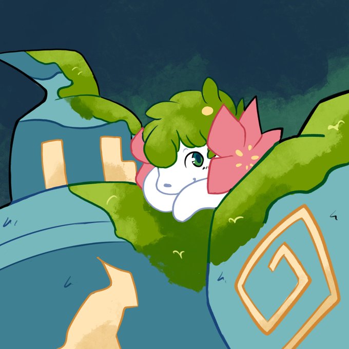 Another little icon for my Team Gaia, a pair made up of Shaymin, the hero, and Golurk, the partner :) #artfight2023