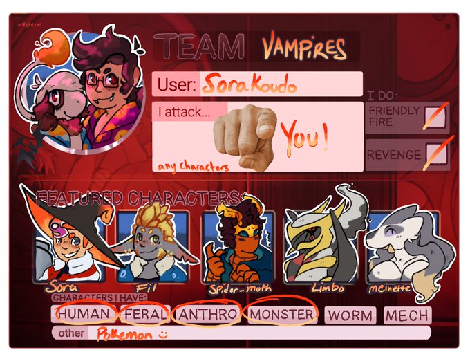 Good luck to everyone in Art fight this year! Team Vampires all the way for me! Feel free to link yours down below :) #artfight2023