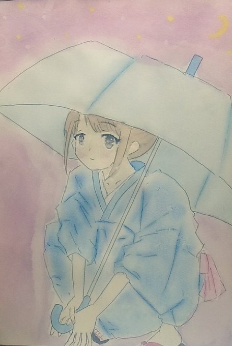 0 9 色塗り適当だけど(w)完成しました。 多分… 髪の色茶色か迷って結局紫にしました!! #イラスト #水彩 #女の子 21/12/25 22:25