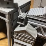 週間「浅草氏の塔を作る」その14 右側の住居塔はまだ4割程度。 鉄道模型ストラクチャー3階建て団地を6階に改装。 上層部はプラ板箱組みを重ね重ねて。 ガウディのカサミラとかがイメージなんだけど全然違うがこのまま進むます。 #映像研には手を出すな