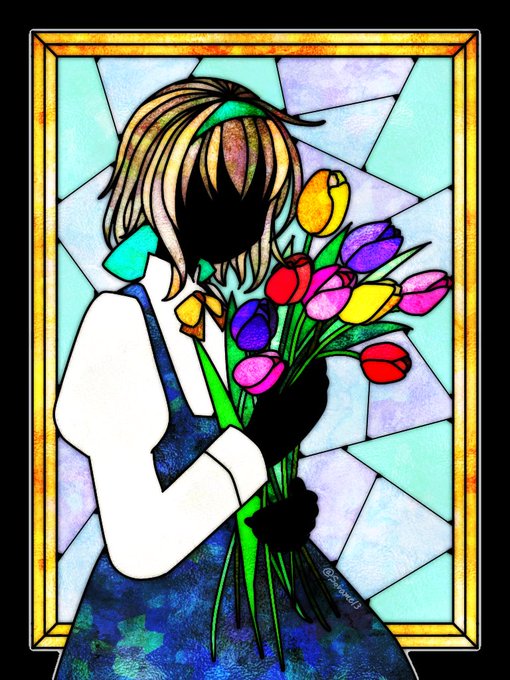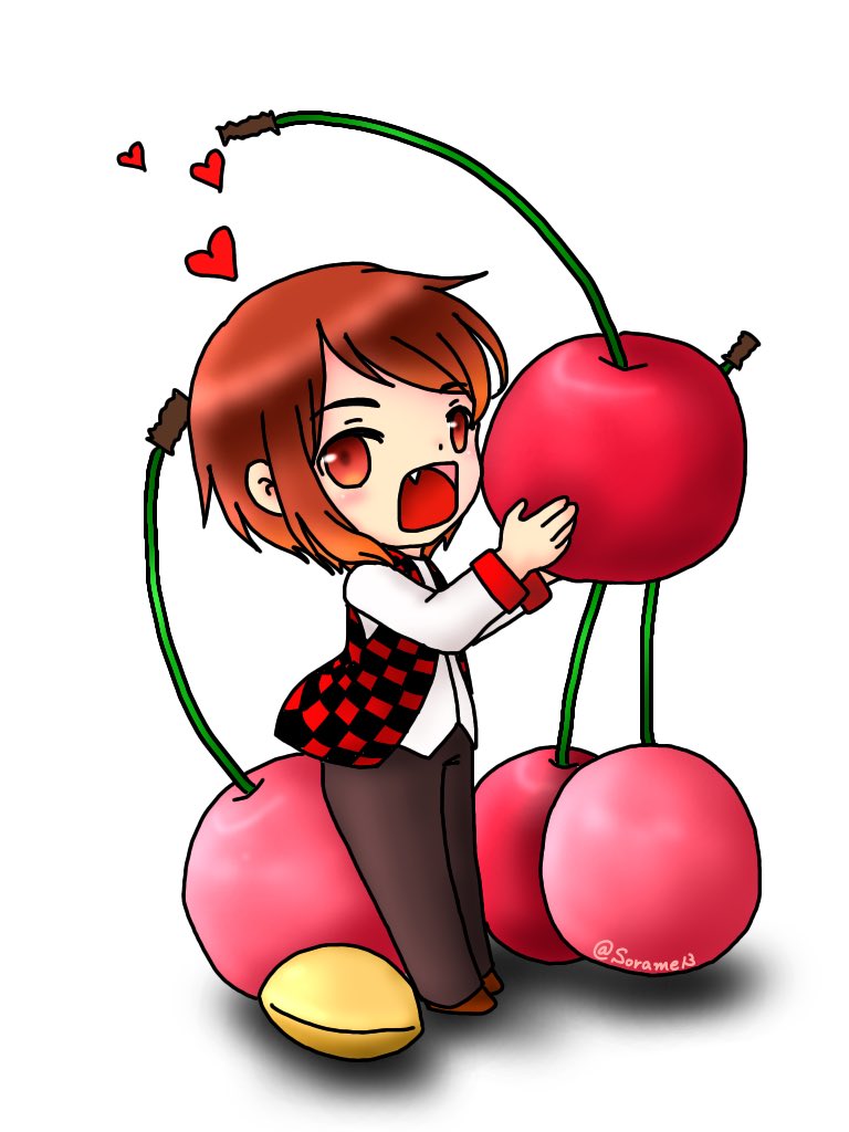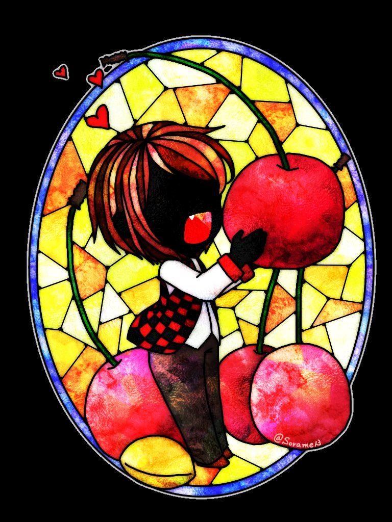 ルーさんでさくらんぼ 初期の塗り方と、影絵風ステンドグラスver.なのです。 合わせてもちゃんと1時間以内ですよー♪︎ どっちが良きかな…? @Hetalia_1daw #APHワンドロ版深夜創作60分一本勝負