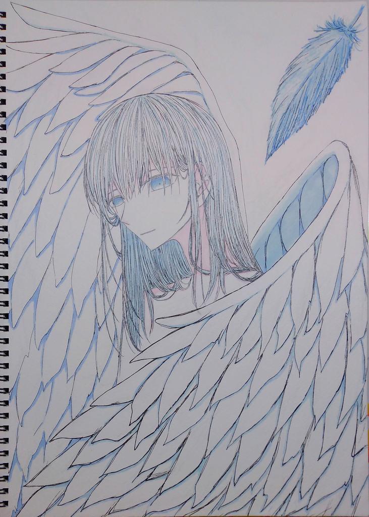 『 』 #絵 #イラスト #アナログ #オリキャラ #天使 #堕天使 #青