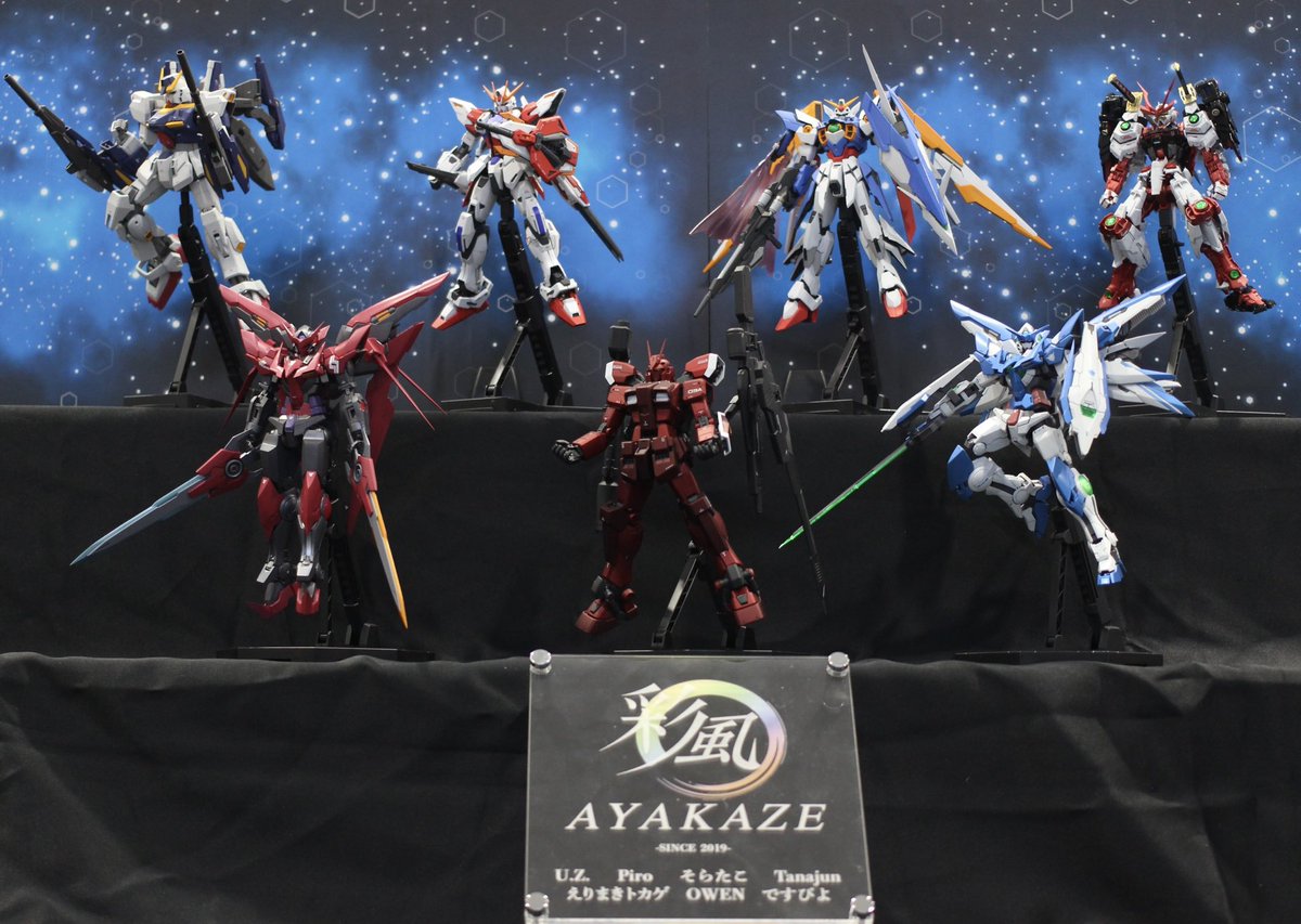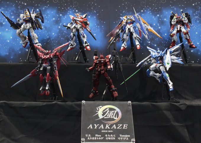 ついにやってきた静岡ホビーショー!! 自分なりに改修を行なったアメイジングエクシアと初めてのファイブスター・バング、アストレイアマツハナver.華を展示します(˶‾᷄ ⁻̫ ‾᷅˵) いろんな人に見てもらうのが楽しみです。 当日はよろしくお願いします! さーー、ホテルでバング組み立てるぞ!笑 twitter.com/designw_ayakaz…