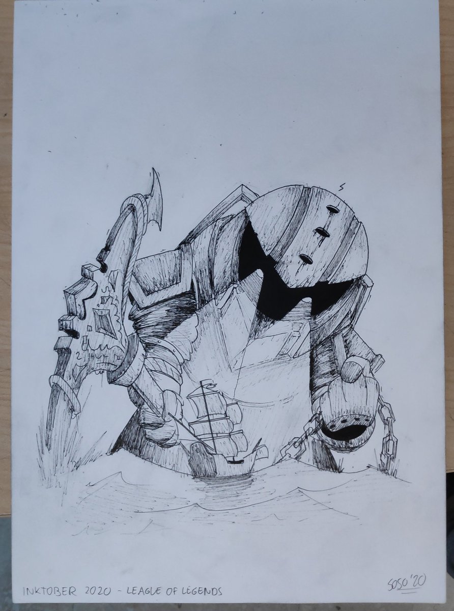 Inktober day 8/9 - The Titan of the Depths #inktober #inktober2020 #leagueoflegends #LeagueOfLegendsFanArt #loltubre #loltober #nautilus
